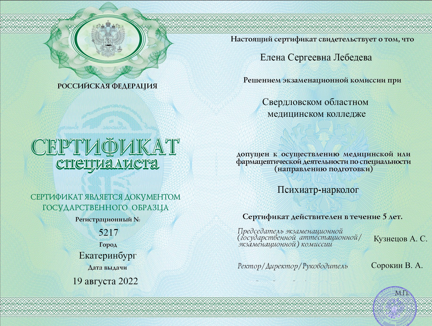 Елена Сергеевна Лебедева врач нарколог клиники доктора Стукаловой в Ершове